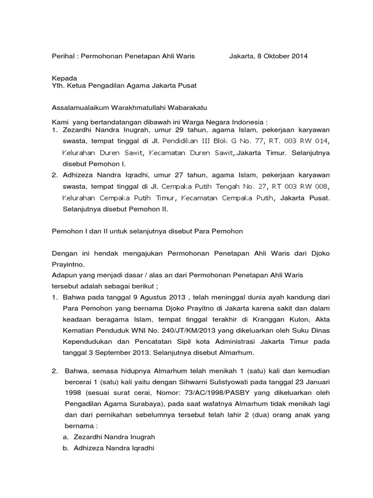 Anda Mungkin Juga Menyukai. November 20 2020 2208. Permohonan penetapan ahli waris di pengadilan negeri pn biasanya diajukan oleh warga negara indonesia selain penganutberagama islam.